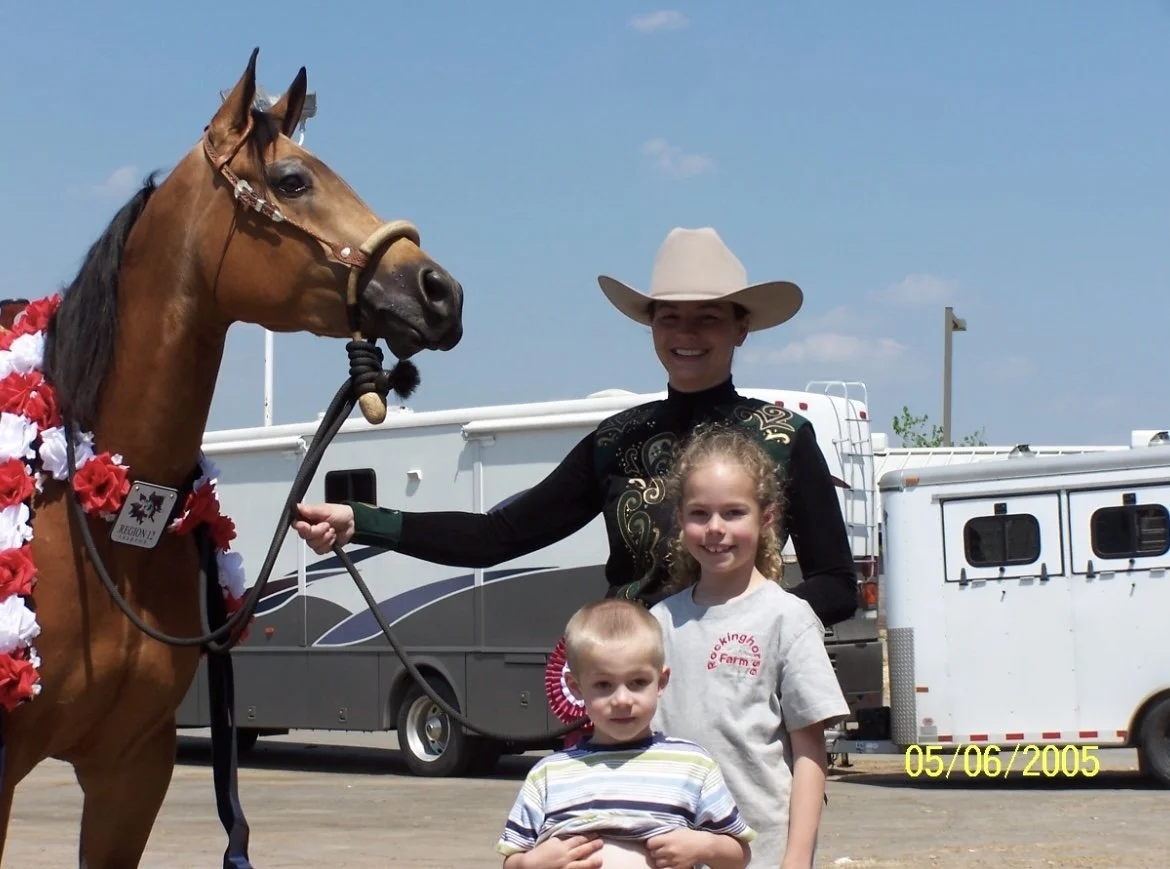 YL Bronco Boogie, “Bronco”, after winning the Western Pleasure class with my mom at the Region 12 rated Arabian show. Pictured with me and my younger brother Wil.